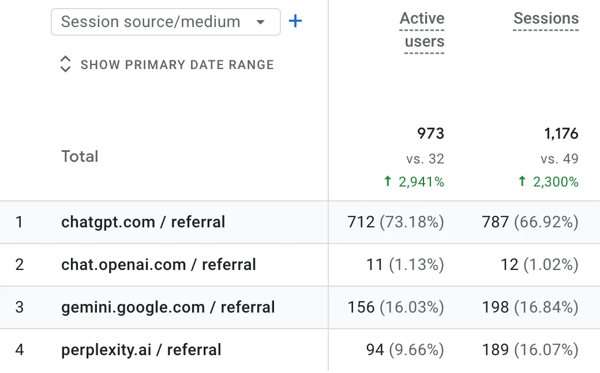 This resulted in over 10.5 million impressions and 20,100 clicks from search engines within a 12-month period. Interestingly, about 5% of their total traffic now comes directly from AI-driven search agents. It’s a traffic source that was 0% a year before, driving net-new traffic to the website.